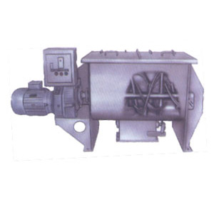 該機(jī)由混合槽、螺旋攪拌葉片和傳動部件等組合而成,螺旋葉片一般做成二層,外層螺旋將物料從兩側(cè)向匯集,內(nèi)層螺旋將物料從向兩側(cè)分流,使物料在混合槽內(nèi)形成對流混臺,從而達(dá)到高均勻度混合。