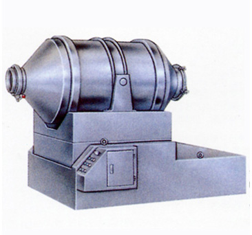 筒為圓柱形料筒,筒內不帶任何攪拌裝置,在繞其對稱軸作自轉的同時,又繞水平軸作“可倒置”搖擺運動,從而迫使料筒內的物料既有擴散混合又有移動混合。該機混合時間短,混合均勻度高,多功能可以粉碎混合同時進行。